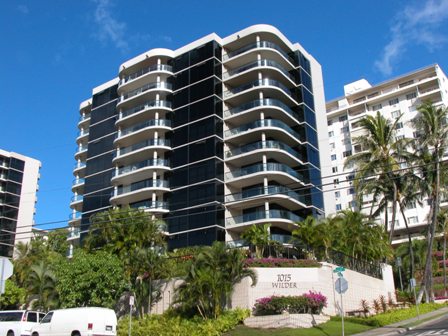 DESCRIPTION: Built in 1964, 1015 Wilder is a 12 stories high-rise with a total of 58 Fee Simple units in two identical building. Most apartments are configured as two bedrooms/two baths or three bedrooms/two baths. 115 parking stalls conveyed with the units plus 13 stalls are available for guests. Amenities include swimming pool, whirlpool, barbecue grill, and recreational area. SECURITY: Secured entry, locked door requiring pass key, keyed elevator, private security guard on premise, and video cameras. PETS: Yes, verify with resident manager concerning their latest House Rules with regards to size, type and number of pets.garage entrance. SUPERMARKETS: Safeway - 1121 South Beretania Street, Times - 1290 South Beretania Street, Foodland - 1460 South Beretania Street. REGIONAL MALL: Ala Moana Shopping Center - 1450 Ala Moana Boulevard. PUBLIC SCHOOLS: Lincoln for elementary, Stevenson for intermediate and Roosevelt for high school. COMMENTS: Units in 1015 Wilder have very spacious interiors plus wrap around lanais. Units on higher floors have excellent views of ocean, mountain, city and Diamond Head. Landscaped recreation deck is located on the roof of parking garage.