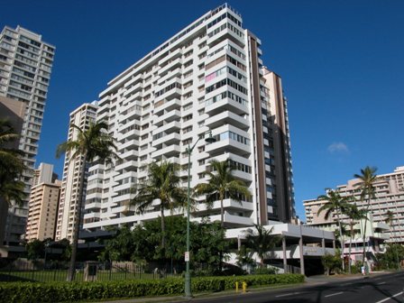 Return to www.myhawaiicondo.com DESCRIPTION: Built in 1973, Ala Wai Townhouse is a 20 stories high-rise with a total of 100 units. Leasehold condominium in one bedroom/one bath, two bedrooms/one bath and two bedrooms/two baths floor plans. One parking stall conveyed with each unit. Amenities include a swimming pool and recreation deck. SECURITY: Locked door requiring pass key, keyed elevator, video cameras. PETS: Yes, verify with resident manager concerning their latest House Rules with regards to size, type and number of pets. SUPERMARKETS: Food Pantry - 2370 Kuhio Avenue, Safeway - 888 Kapahulu Avenue, Foodland - 2919 Kapiolani Boulevard REGIONAL MALL: Ala Moana Shopping Center - 1450 Ala Moana Boulevard. PUBLIC SCHOOLS: Jefferson for elementary, Washington for intermediate and Kaimuki for high school. COMMENTS: Two bedroom units are quite large with approximately 1,361 square feet of gross area. Nice canal, golf course and mountain view from higher floors. Current lease expires 2029. Check with condo association regarding the fee offering information.