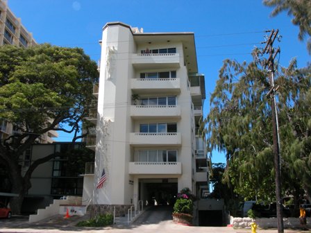 Return to www.myhawaiicondo.com DESCRIPTION: Built in 1960, Castle Surf is a 6 story condominium with ocean and sandy beach frontage. A total of 38 Fee Simple units are available in one bedroom/one bath, two bedrooms/two baths and three bedrooms/two baths of different sizes and configurations. Largest unit has over 1,960 sq. ft. of total living area including lanai. At least one covered parking stall is conveyed with each unit. Amenities include oceanfront deck for residents. There is also a private gate access to ocean and surfboard racks. SECURITY: Locked door requiring pass key, video cameras. PETS: Not allowed. SUPERMARKETS: Food Pantry - 2370 Kuhio Avenue, Safeway - 888 Kapahulu Avenue, Foodland - 2919 Kapiolani Boulevard, Times Supermarket - 1173 21st Avenue. REGIONAL MALL: Kahala Mall - 4211 Waialae Avenue. PUBLIC SCHOOLS: Waikiki for elementary, Washington for intermediate and Kaimuki for high school. COMMENTS: Castle Surf is located adjacent to Elks Club. Higher floor units have oceanviews over Elks Club and coconut trees. One bedroom unit is quite spacious with approximately 700 sq. ft. of interior living area plus nearly 100 sq. ft. of open lanai. Some properties have enclosed lanais to create a larger living room. Maintenance fee includes cable TV, electricity, hot water, water and sewer. Building is popular as a 30 days vacation rental.