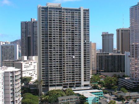 Return to www.myhawaiicondo.com DESCRIPTION: Built in 1974, Chateau Waikiki is a Fee Simple condominium conveniently located across the street from Eaton Square, a small shopping arcade. The building is a 39 stories high-rise with 460 units in one bedroom/one bath, two bedrooms/one bath configuration plus penthouse models. Odd number units facing Waikiki have their lanais next to the living room. Even number units facing Ala Wai canal have their lanais next to the bedroom. There are 7 stalls available for guest parking plus 572 stalls conveyed with the units. Amenities include a tennis court, swimming pool, barbecue grill, exercise room, recreation room and recreation deck. SECURITY: Locked door requiring pass key, private security guard on premise, video cameras. PETS: Yes, verify with resident manager concerning their latest House Rules with regards to size, type and number of pets. SUPERMARKETS: Safeway - 1121 South Beretania, Don Quijote - 801 Kaheka Street, Foodland at Ala Moana Shopping Center. REGIONAL MALL: Ala Moana Shopping Center - 1450 Ala Moana Boulevard. PUBIC SCHOOLS: Ala Wai for elementary, Washington for intermediate and Kaimuki for high school. COMMENTS: Chateau Waikiki remains popular with U.S. mainland and international buyers. Location is on a quiet section of Waikiki but close to shopping areas and restaurants. Maintenance fees include electricity and AC Central. There are still some units being held as Leasehold. Current lease on Leasehold units expires 2050. Inquire about the fee purchase amount from the condominium association.
