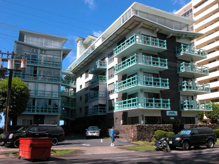 Return to www.myhawaiicondo.com DESCRIPTION: Fee Simple cooperative property built in 1959, Diamond Head Ambassador consists of 3 separate buildings connected by elegant wood & concrete bridges at each floor level. There are 89 units in studio, one bedroom/one bath and two bedrooms/one bath models. Amenities include a swimming pool, meeting room, library and recreation area and storage locker. There are no parking stalls conveyed with the units. The limited number of parking stalls are rented on a first-come, first-serve basis. SECURITY: N/A. Entry is through the center, main building with bridges on each floor leading to annex buildings on both sides. PETS: Not permitted. SUPERMARKETS: Food Pantry - 2370 Kuhio Avenue, Safeway - 888 Kapahulu Avenue, Foodland - 2919 Kapiolani Boulevard, Times Supermarket - 1173 21st Avenue. REGIONAL MALL: Kahala Mall - 4211 Waialae Avenue. PUBLIC SCHOOLS: Waikiki for elementary, Washington for intermediate and Kaimuki for high school. COMMENTS: Asian inspired architecture, Diamond Head Ambassador was considered highly innovative in its design approach. Visitors driving on Kalakaua Avenue still slow down to marvel at the this property. Also has a garden by the pool and locked access gate to the ocean. Residents gather by the pool in the late afternoon to socialize and watch the sunset. Under cooperaive association rules, owners are permitted a maximum of 2 rentals per year. The rental period could be one month, two months or six months but the maximum is twice.