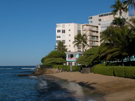Return to www.myhawaiicondo.com DESCRIPTION: Built in 1958, Kainalu is a Fee simple oceanfront cooperative building with 59 units. This is a secured property with private access to sandy beach. Available in studio and two bedrooms/two baths configurations. Studio living area is approximately 420 square feet plus 165 square feet lanai. Large Two bedrooms/two baths have over 1,000 square feet of interior living area. Surfboard and bike storages are available. SECURITY: Secured building entry requiring pass key, video cameras. PETS: Not permitted. SUPERMARKETS: Food Pantry - 2370 Kuhio Avenue, Safeway - 888 Kapahulu Avenue, Foodland - 2919 Kapiolani Boulevard, Times Supermarket - 1173 21st Avenue. REGIONAL MALL: Kahala Mall - 4211 Waialae Avenue. PUBLIC SCHOOLS: Waikiki for elementary, Washington for intermediate and Kaimuki for high school. COMMENTS: Kainalu is located at the Diamond Head end of the Gold Coast in a secluded neighborhood near expensive private homes. Ocean area fronting the property is popular for surfing and windsurfing. Although rarely denied, association approval is necessary for the purchase.