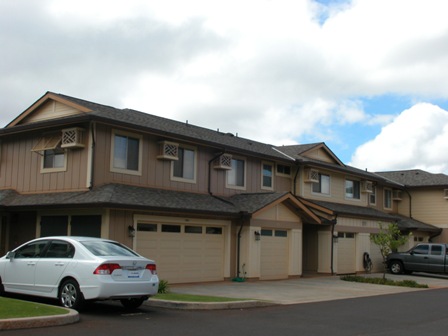 DESCRIPTION: Built in 2005 - 2006, Nohona at Mililani Mauka is a two-stories townhouse development with a total of 164 Fee Simple units. Double wall, steel frame construction. Available in one, two and three bedrooms of different sizes and configurations. Large three bedroms/two baths units have approximately 1,105 sq. ft of living area plus 40 sq. ft. of open lanai with split-level floor plan and attached 2-car garage. SECURITY: Individual homes may have their own security systems. PETS: Yes, verify with resident manager concerning their latest House Rules with regards to size, type and number of pets. SUPERMARKETS: Safeway - 94-780 Meheula Parkway, Star Market - 95-1249 Meheula Parkway, Foodland - 95-221 Kipapa Drive. REGIONAL MALL: Town Center of Mililani - 95-1249 Meheula Parkway. PUBLIC SCHOOLS: Mililani Mauka for elementary, Mililani for intermediate and Mililani for high school. COMMENTS: Nohona at Mililani Mauka is a well-maintained townhouse complex. Second parking stall may be referring to individual driveway. Guest parkings are also available. House numbers will differ based on the building locations.