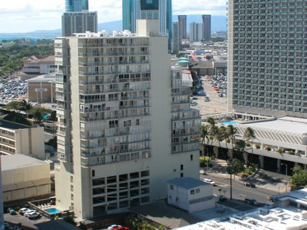 Return to www.myhawaiicondo.com DESCRIPTION: Built in 1969, Sunset Towers is a 20 stories high-rise with 82 units. Available in one bedroom/one bath, two bedrooms/one and half baths, two bedrooms/two baths and three bedrooms/two baths of different sizes and configurations. Amenities include swimming pool, barbecue grill and recreation room. SECURITY: Secured entry, locked door requiring pass key, keyed elevator, video cameras, secured garage entrance. PETS: Not permitted. SUPERMARKETS: Safeway - 1121 South Beretania, Don Quijote - 801 Kaheka Street, Foodland at Ala Moana Shopping Center. REGIONAL MALL: Ala Moana Shopping Center - immediately across the street. PUBLIC SCHOOLS: Ala Wai for elementary, Washington for intermediate and McKinley for high school. COMMENTS: The location of Sunset Towers is very close to the Hawaii Convention Center. it is convenient to bus lines, Ala Moana Beach & Park and Ala Moana Shopping Center. Secured building with low maintenance fees. Majority of the units are Fee Simple. Some have beautiful ocean and yacht harbor views. On-site resident manager.