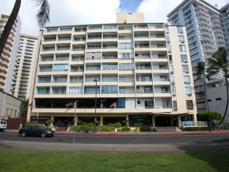 Return to www.myhawaiicondo.com DESCRIPTION: Built in 1978, Waikiki Grand Hotel is a 10 stories high-rise with a total of 219 of mostly Fee Simple studio units. This is an affordable condominium/hotel property. Current lease on Leasehold units expires 2043. Location is across the street from the 500 acres Kapiolani Park - home of the Honolulu Zoo, Waikiki Aquarium, Royal Hawaiian Bandstand and Waikiki Shell. Kapiolani Park is also well known for its broad green lawns, public tennis courts and jogging tracks. Lobby and common areas have been renovated and they are well-maintained. Amenities include swimming pool, laundry room on each floor and a sundeck on the roof top. SECURITY: Hotel lobby personnel, private security guard on premise, video cameras. PETS: Yes, verify with resident manager concerning their latest House Rules with regards to size, type and number of pets. SUPERMARKETS: Food Pantry - 2370 Kuhio Avenue, Safeway - 888 Kapahulu Avenue, Foodland - 2919 Kapiolani Boulevard. REGIONAL MALL: Ala Moana Shopping Center - 1450 Ala Moana Boulevard. PUBLIC SCHOOLS: Jefferson for elementary, Washington for intermediate and Kaimuki for high school. COMMENTS: Affordably priced yet only half a block from Waikiki Beach, Waikiki Grand Hotel location is hard to match. Units facing the park have an excellent view of Diamond Head and surrounding greenery. However, Kapahulu Avenue is a busy artery frequented by tour buses so expect some street noises. Parking stalls may be available to purchase.